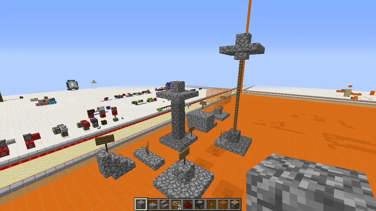 Building a Petra style base in the desert, with a small campsite around it. The place is a gap in a mountain range with two huge columns, with a waterfall on one. At some point, I’ll build the skeleton of some large creature outside it. SV coords: -333 71 100