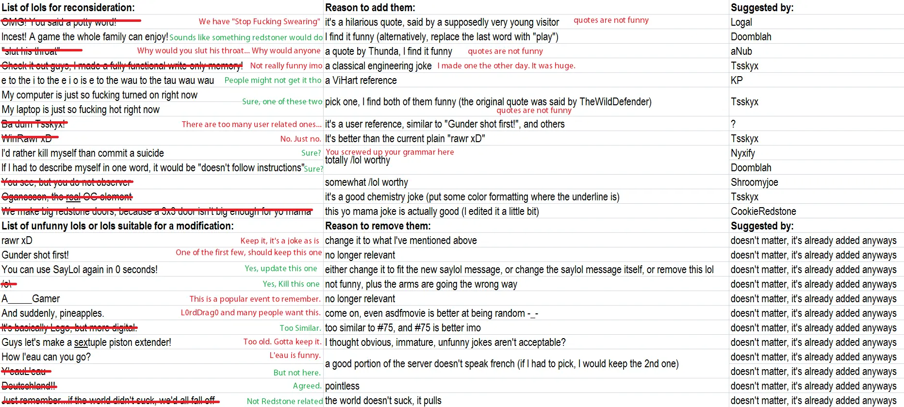 Redstoner → Entry requests for /lol → (not an entry) List of lols for reconsideration, and lols suitable for an edit or removal